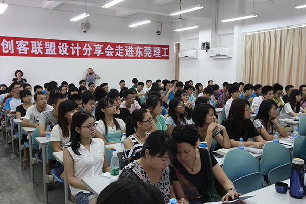 創(chuàng)客聯(lián)盟訊(記者 王柱輝)學(xué)生如何培養(yǎng)自身的設(shè)計(jì)能力?企業(yè)如何培養(yǎng)年輕設(shè)計(jì)師群體?被譽(yù)為“第三次微型工業(yè)革命”的3D打印技術(shù)前景如何?9月17日上午,由東莞市創(chuàng)客聯(lián)盟網(wǎng)絡(luò)科技有限公司主辦的“創(chuàng)客聯(lián)盟·設(shè)計(jì)分享會(huì)”在東莞理工學(xué)院松山湖校區(qū)舉行。會(huì)議邀請(qǐng)了深圳市生活匯貿(mào)易發(fā)展有限公司(簡(jiǎn)稱“HG”)執(zhí)行董事楊朝順、設(shè)計(jì)總監(jiān)謝先生、Delonghi集團(tuán)的彭工等嘉賓到場(chǎng),和近百名機(jī)械工程學(xué)院的學(xué)生分享自己設(shè)計(jì)生涯中的心路歷程。